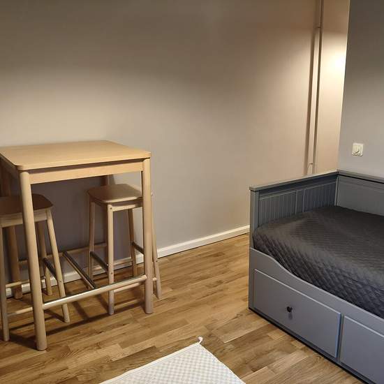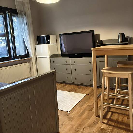 Ett rum med egen ingång (uthyrningsdel) passande för student eller veckopendlare. Möblerat men utan kök, finns mikrovågsugn och vattenkokare. Stort utbud av mat och restauranger i Kista galleria som ligger bara fem minuter promenadväg bort, där finns även bibliotek, vårdcentral och flertalet gym. Bra kommunikationer i närheten med tbana och buss. Vackra naturområden nära, Igelbäckens kulturreservat med bra promenadstråk och skog. I uthyrningsdelen ingår ett sovrum, badrum med toalett, dusch och handfat, en liten klädkammare samt hall. Serv...