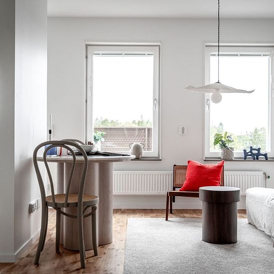 Ljus och modern etta med balkong i populära Mandelblom, inflytt i augusti Välkommen till en stilren och välplanerad lägenhet om 34,6 kvadratmeter, belägen på sjätte våningen med härlig utsikt från balkongen. Här bor du i ett modernt hus med solceller på taket och genomtänkta materialval i både kök och badrum. Planlösningen är öppen mellan kök och vardagsrum vilket skapar en rymlig känsla. Stora fönster ger ett fint ljusinsläpp och den egna balkongen blir en naturlig plats för morgonkaffet eller kvällssolen. Badrummet är helkaklat och utrus...