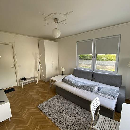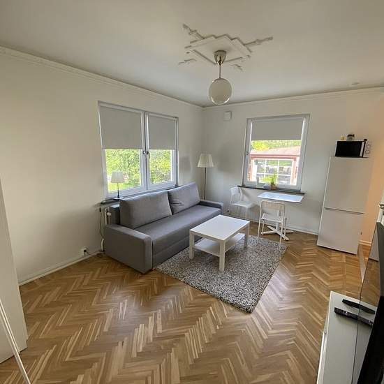 Ljus 1:a i centrala Kristianstad – Söder Möblerad lägenhet uthyres med hög standard. Allt du behöver finns på plats, det är bara att flytta in. Öppen planlösning, högt i tak, nyrenoverat badrum med golvvärme, nytt kök och fiskbensparkett. Lägenheten ligger i ett lugnt och trevligt område mitt i Kristianstad, nära dagis, skola, sjukhus, affärer och goda kommunikationer. Stor och trivsam trädgård delas med övriga hyresgäster. Avstånd till service och kommunikationer: • Kristianstad City – ca 400 m • Centralsjukhuset CSK – ca 800 m • ICA Maxi &...