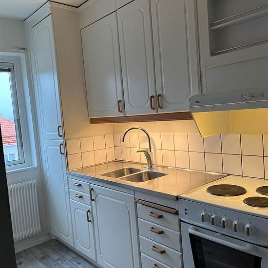 Drottninggatan 33, 35 Fastigheten ligger centralt med närhet till åsen där det finns fina promenadmöjligheter i upplyst elljusspår och utegym. Lägenheterna har en charmig 60-talsstandard men med nyrenoverade helkaklade badrum. Många av lägenheterna har balkong i västerläge med fin utsikt. Trivsamt område med lekpark, skolor, sportanläggningar och matbutiker i närheten. Värme och vatten ingår i hyran, hushållsel tillkommer. Ursprungligt byggår 1962.