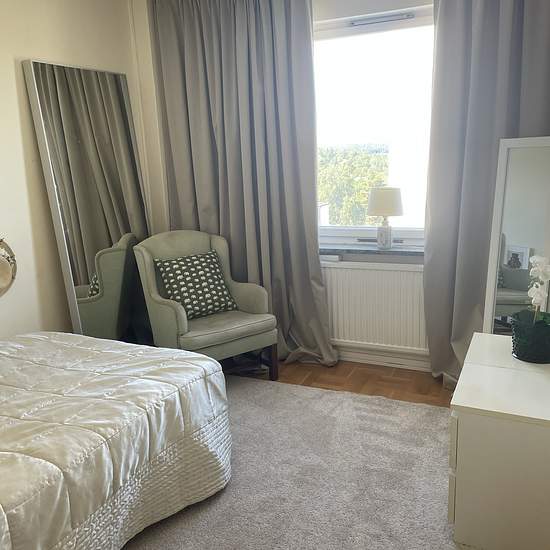 Rum uthyres i fräsch lägenhet – högt upp i huset med utsikt! Barnen har flugit ut och jag har rum som står tomma. Letar du efter ett trivsamt boende med utsikt och smidiga kommunikationer? Då är detta rum perfekt för dig! Om rummet Ett ljust och välplanerat rum på ca 10 kvm uthyres i en modern lägenhet på våning 6. Rummet ligger separat i lägenheten, vilket ger en privat och lugn känsla – perfekt för studier eller jobb. Stort fönster släpper in gott om dagsljus och erbjuder en fin vy över omgivningen. Lägenheten Du delar ett fullt utrust...