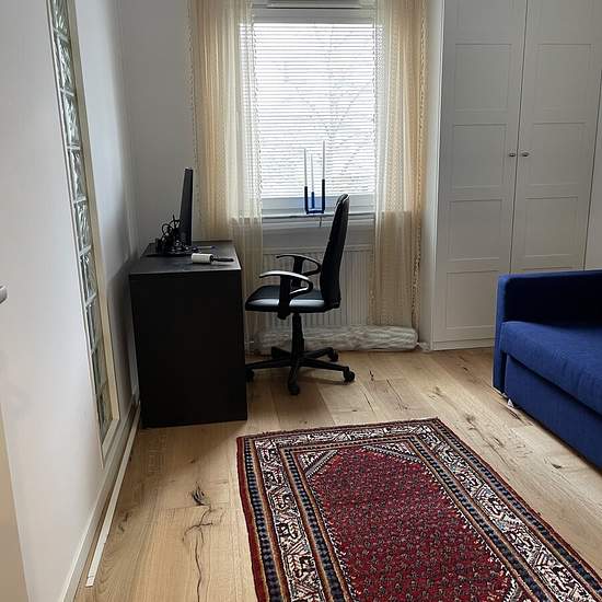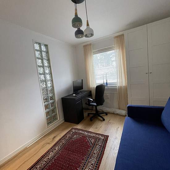 Ljus och rymlig lägenhet på 70 kvm med två sovrum, stort vardagsrum och balkong med fantastisk utsikt mot skogen. Mycket bra läge med endast 50 meter till busshållplats, 400 meter till ICA och cirka 11 minuter med buss till Ropstens station. Jag är oftast inte hemma, vilket innebär att du i praktiken har hela lägenheten för dig själv. Hälsningar Ashkan Serviceavgift för hyresgäst: 297