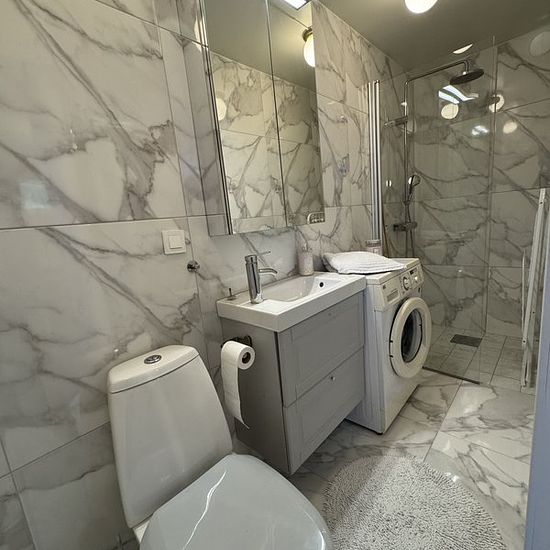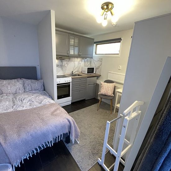 Nybyggd lägenhet(maj 2020) med riktigt kök och tvättmaskin. Ingen insyn i ett naturskönt villaområde. Bra kommunikationer med direktbussar till Ropsten samt goda möjligheter till gratis parkering i området. Uthyres tillsvidare till skötsam person med fast sysselsättning. Hyr ej ut till par eller personer med husdjur tyvärr. Lägenheten hyrs ut möblerad. Obs! El, värme och bredband ingår i hyran. Finns: Spishäll Varmluftsugn Köksfläkt med direkt utsug Mikrovågsugn Kyl/frys Grunduppsättning köks och husgeråd Helkaklat badrum Takdusch Gar...