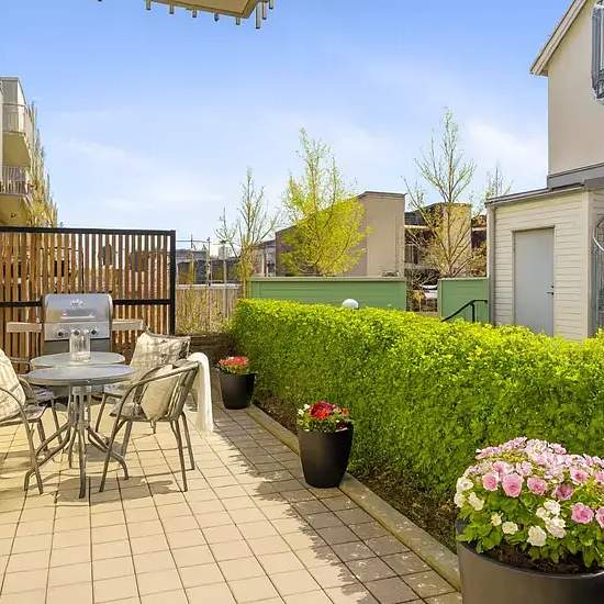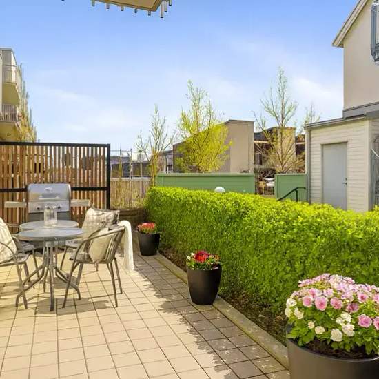 Beskrivning Sovdel med bekväm dubbelsäng, mjuka textilier och gott om ljusinsläpp. Vardagsdel med smart förvaring, matplats och utrymme att koppla av. Stilrent kök – fullt utrustat med spis, kyl/frys, micro, kaffebryggare och matlagningsutrustning. Badrum i smakfull stil med dusch, handdukar och toalettartiklar. Stor uteplats i söderläge – egen, inglasad och solig från morgon till kväll. Perfekt för morgonkaffet eller en bok i solen.