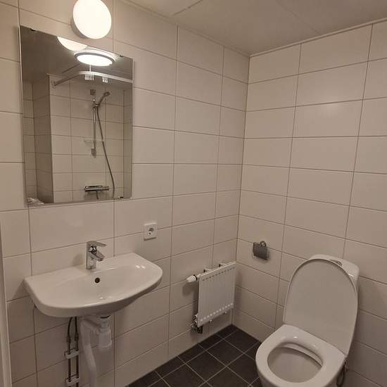 Lägenheten är smakfullt inredd med laminatgolv av ek, ljusmålade väggar och har all standard som behövs för ett bekvämt boende. Det här är ett smart planerat boende med ett allrum som har plats för både matbord och soffa. Köken är utrustade med spishäll, ugn och kombinerad kyl/frys. Badrummen har vitt kakel och antracite klinker. Lägenheten har egen tvätt/tork. Som boende kan du också nyttja kvarterets Felleshus. Tillkommande kostnader är förbrukning av el, varmvatten och värme. Dessa mäts individuellt och faktureras ut tillsammans med...