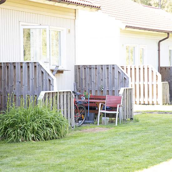 Nybyggd lägenhet på markplan. Parkettgolv i alla rum och innanför entrédörren är det klinker. Köket är från Ikea, diskmaskin ingår. Induktionsspis med varmluftsugn. I badrummet är det kakel och klinker, elektrisk handduktsork. Stor klädkammare. Fiber är indraget. Altan, trädäck på baksidan av lägenheten. Sort lägenhetsförråd i källaren. Gemensam tvättstuga i källaren.