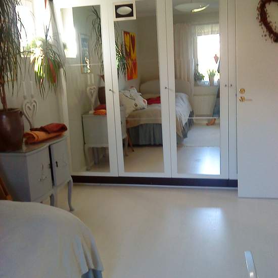 Markplanslägenhet. Glasat uterum och uteplats. Var sitt rum övriga ytor delas. I hyran ingår lån av cykel, diskmedel, tvättmedel, papper, sängkläder, lakan och handdukar. Du får gärna ha en vän eller släkting på besök efter överenskommelse.