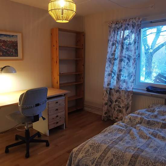 Ett fräscht möblerat rum med vit tapet och parkettgolv uthyres i en 5:a i Kollektivhuset Regnbågen på Klostergården. Tillgång till kök och eget badrum i lägenheten. Uthyres endast till kvinnlig sökande. Huset som lägenheten ligger i är ett kollektivhus med lägenheter i olika storlekar och vi har en stor gemensam trädgård med fruktträd och bärbuskar samt trädgårdsmöbler där man kan vistas. Det är obligatoriskt att städa korridoren ca 2 ggr per termin samt att delta på röjardagar (en lördag eller söndag ett par gånger per termin). Röjardagar...