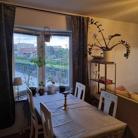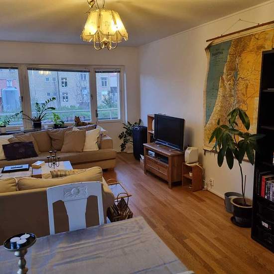 English below OBS inflyttingsdatum flexibelt. Möblerat rum på c 8 kvm uthyres i en 67 kvm 3:a (2 sovrum, vardagsrum + kök) till en skötsam person. Bostaden är till för 2 personer (dvs inneboende och jag) så den totala boytan per person är c 33 kvm. Därutöver finns en rymlig balkong i västerläge med eftermiddags/kvällssol. 4985 kr ligger (varm-)hyran på. Wifi-internet via Bahnof på 100 mbit ingår. Egen hemförsäkring införskaffas från inflyttningsdatumet. Elräkningen betalas varje månad - kan variera lite pga rörligt elprisavtal men bruka...