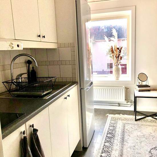 Ledig övernattningslägenhet i centrala Mariestad på Kungsgatan 8 1 rum och kök/kokvrå på 25 kvm Kyl, frys, ugn, spis, fläkt. Tillgång till tvättstuga Värme, el och vatten ingår i hyran Fiberanslutning Rökning ej tillåtet i lägenheten