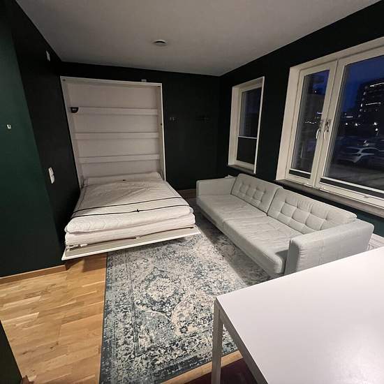 Smart planerad 30kvm Lägenhet i Åby, Mölndal Jag ska bli sambo och ska därför hyra ut min lägenhet. Det är en välplanerad, smart 1a på 30kvm och ligger vid Stallbacken, Åby, Mölndal. Lägenheten kommer vara möblerad med; - säng (som du ser på bilderna, fällbar) - soffa - garderob (finns ingen källare) - matbord med stolar Walk in closet finns (är helt tömt sedan bilden togs). Tvättstuga finns. Kontrakt kommer skrivas med 6månaders intervall enligt BRFs bestämmelser. Serviceavgift för hyresgäst: 396