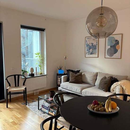Lägenheten är välplanerad och här kan du kan njuta av moderna bekvämligheter som högkvalitativa vitvaror och smarta förvaringslösningar. Köket är utrustat med allt du behöver för att laga god mat och det finns gott om arbetsytor och förvaringsutrymmen så att du kan hålla ordning och reda. Vardagsrummet är rymligt stort och här kan du koppla av. Det finns även en lugn balkong som vetter mot innergården - perfekt för att njuta av en kopp kaffe eller för att bjuda över vänner på en grillkväll. Sovalkoven är smart planerad med en skjutdörrsgarde...