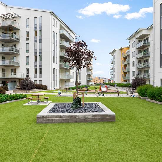Härlig1:a med stor uteplats. Fin plats för att äta lunch i solen. Modernt utrustad med diskmaskin, varmluftsugn och induktionsspis. Tvättmaskin/torktumlare i badrum. Interiörbilder ifrån liknande lägenhet. Hyran avser 2025-års hyresnivå.