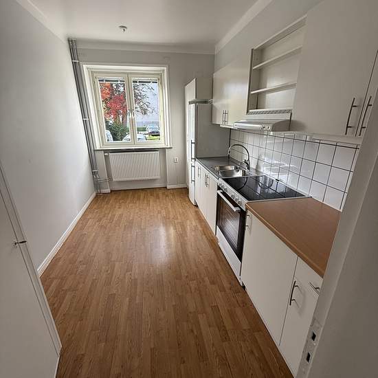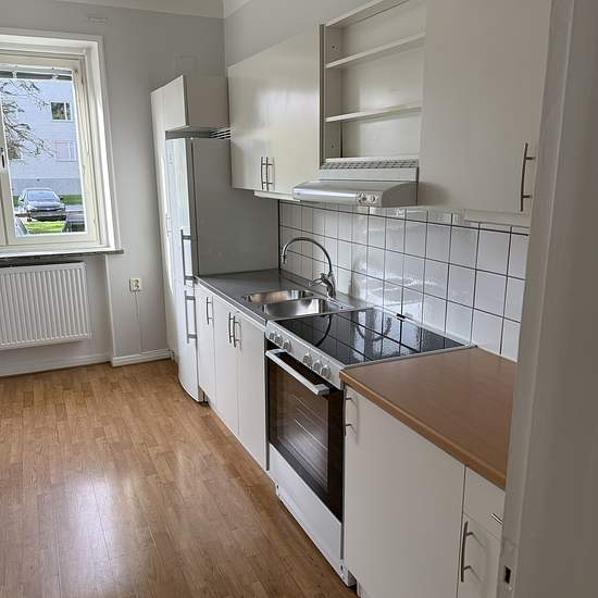 Lägenhet på väster Ett rum och kök uthyres på Hertig Karls allé 39. Lägenheten är på 38,3kvm och har ett badrum som renoverades helt för två år sedan. Den ligger på första våningen och har fönster in mot gården. Lägenheten har parkettgolv och ljusgråväggar. Badrum med kakel och klinkers, handfat, wc och duschplats. Köket har vita skåpsluckor och vitt kakel ovan bänkskivan. Den maskinella utrustningen består av: Spishäll, ugn och kyl/frys. Gemensam tvättstuga i källaren, där även förrådet ligger. EL Elabonnemang är tecknat med Eon. Du...