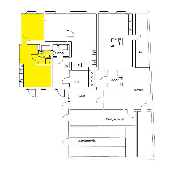 1rok i centrala Oskarshamn. (avser den gul markerade lägenheten på ritningen) Gemensam tvättstuga. El tillkommer efter förbrukning. Här bor du mitt i Oskarshamn med närhet till mataffärer, butiker, restauranger, ishall, hamnen och gym.