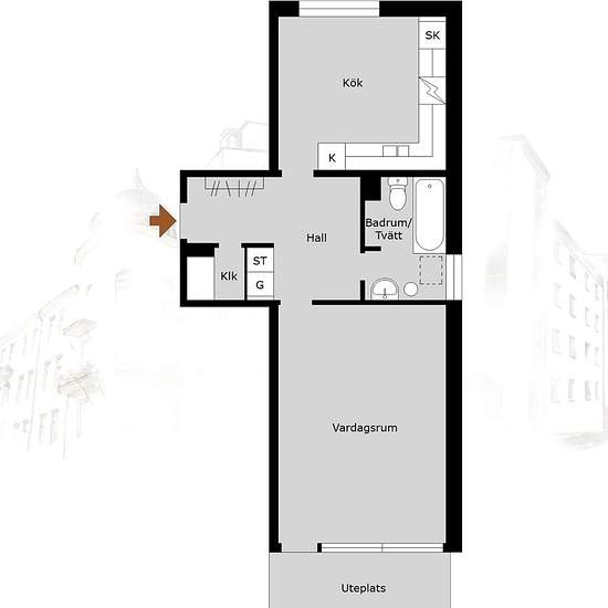 Renoverad lägenhet om 1 rum och kök. Lägenheten är ljus och hemtrevlig med vitmålade väggar och golv av ek-parkett. I hallen finns ett praktiskt klinkergolv i grått samt säkerhetsdörr. Köket har vita luckor med stålhandtag, kyl/frys, diskmaskin, spishäll med varmluftsugn, fläkt och mikron är inbyggd. Badrummet är helkaklat med golvvärme som går i tonerna vitt och grått. Här hittar ni bekvämligheter som tvättmaskin och torktumlare, duschdörrar i glas, kommod och spegel med belysning. OMGIVNING Ett lugnt område med lummiga omgivningar. H...