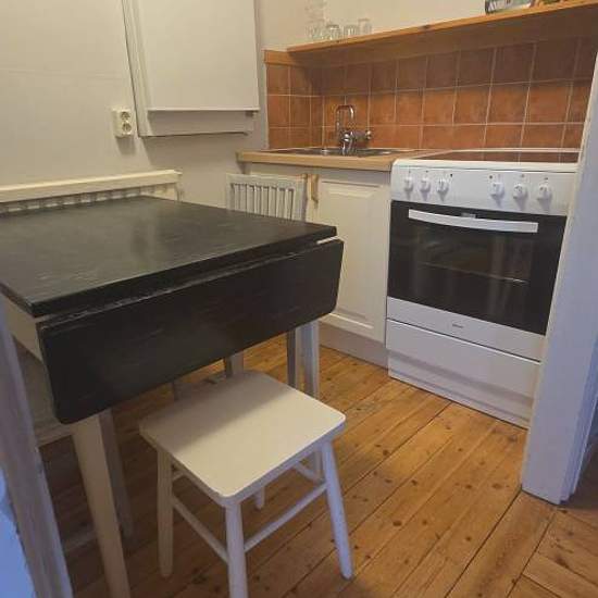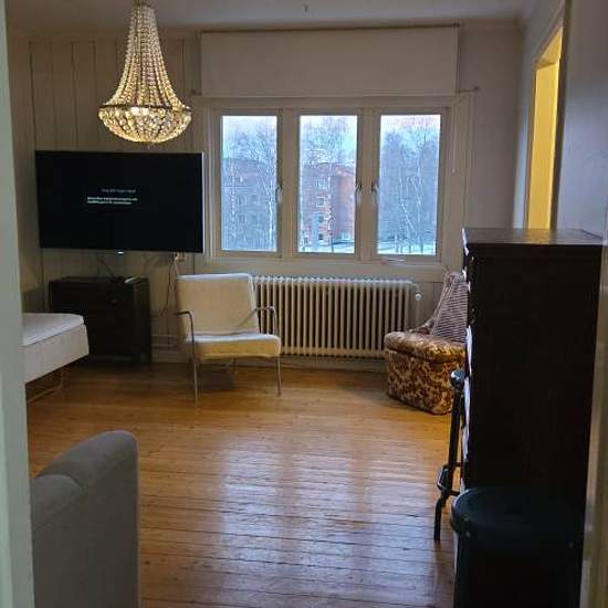 Möblerad trevlig etta uthyres inklusive El.Nyrenoverat badrum. 3- glas fönster. Bredband. 60 tums TV. 5 min gångväg till centrum och 3 minuter till Campus/Universitet. Kokvrå o sovalkov nyrenoverat badrum. 3:e vån med utsikt över park. Tillträde 1:a december