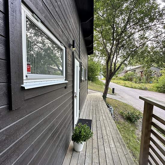 Attefallshus med egen terrass! Parkering för bil möjligt. Inklusive internet och tv. Möblerat men vi kan flytta något om du vill. 2 minuter till bussen 447/442/414 till Slussen. Hemköp 10 minuter promenad. Serviceavgift för hyresgäst: 595