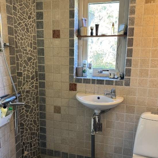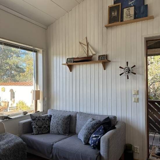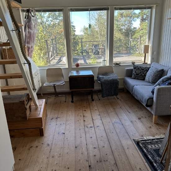 Medelhavs inspirerad 20 kvm stuga + 7 kvm sovloft i Kummelnäs.  Allmänt om stugan Stugan är byggd på öppen lösning med högt i tak och mycket rymd, vilket gör att den känns betydligt större än vad man kan tro). Möblerad med åretrunt-standard, tjockt isolerad samt 3-glasfönster.  Badrum i sjösten med dusch + WC och golvvärme på vintern.  Kök med kyl, micro, keramisk häll och kaffebryggare. Porslin och bestick ingår. Stugan har genomgående trägolv och är utrustad med liten platt-TV (med öppna kanaler), soffa, soffbord, garderob, sekret...