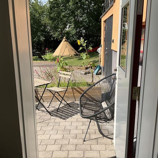 Garden flat in detached house with private access. Large bed/living room with wood-burner. Separate fully-equipped kitchen with full-size table. Modern shower room. Pet friendly Long term rental 20 mins from Slussen by public transport, 30 mins by bike. We plan to show the place in the beginning of June. Included: Heating High-speed internet Trash collection Parking Water Furnishings Wood for the fire Use of shared laundry room 2 days/week Not included (billed separately): Electricity Serviceavgift för hyresgäst: 612