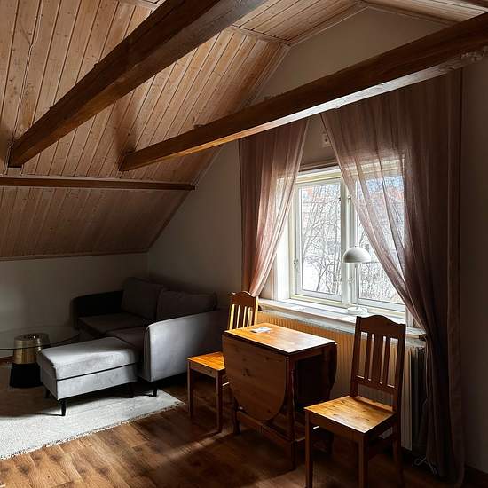 Fin och möblerad 1:a på ca 35m2, ligger i ett lugnt och populärt område med endast några minuters gångavstånd till både centrum, sjukhus och bussstationen. Hyran är 7000/mån och då ingår värme, vatten och el. Serviceavgift för hyresgäst: 331