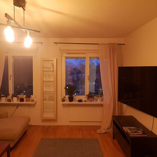 Stor etta med sovalkov i populära Sköndal. Alldeles intill Drevviken med fina promenadstråk och badmöjligheter. Cirka tio minuter med buss till Gullmarsplan. Föreningen erbjuder tvättstuga och bastu i källaren tillhörande samma hus, även gym/träningslokal i ett av föreningens andra två hus. Serviceavgift för hyresgäst: 621
