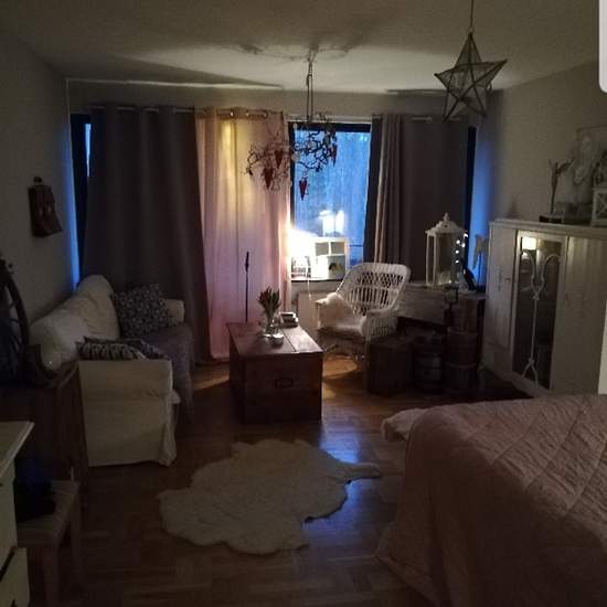 Ljus och Fin lägenhet med parkett och stor balkong i söderläge.Välordnat och skötsamt hus som ligger naturnära. Serviceavgift för hyresgäst: 198