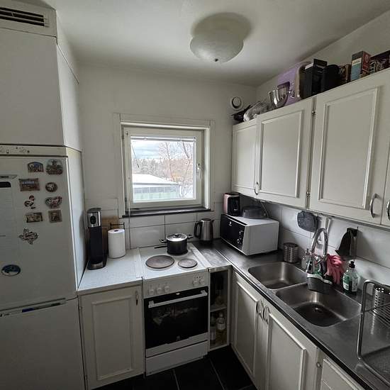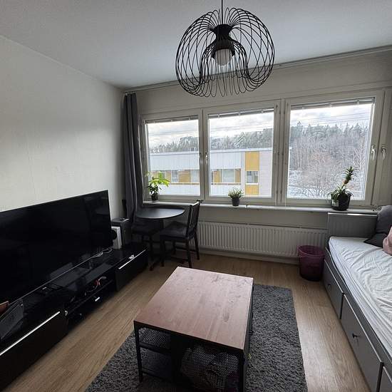 Cozy 1.5-room apartment at Lomvägen, Sollentuna Enjoy the best of both worlds — peaceful nature and easy access to the city. • 8 min by bus to Mörby Centrum • 25 min to Stockholm University • 5 min by bike to Rösjöbadet lake and recreation area • Nature trails just a few hundred meters from your door This well-planned one-room apartment with a sleeping alcove offers a bright and airy living space, and a well-equipped kitchen with plenty of storage. The living room comfortably fits both a sofa and dining area, while the sleeping alcove ...