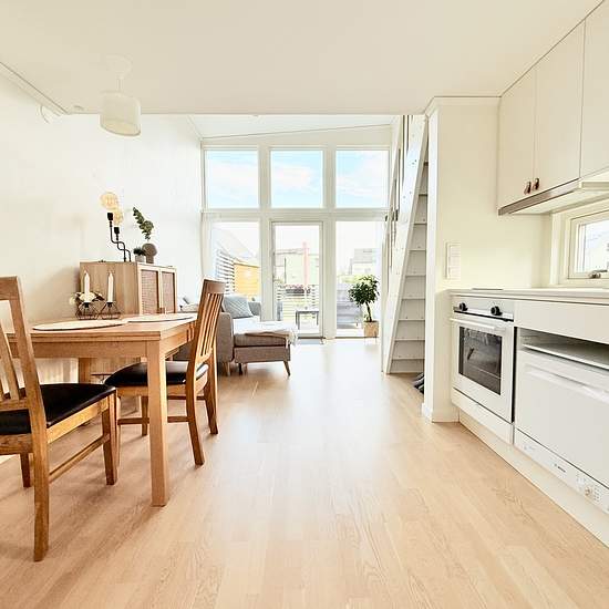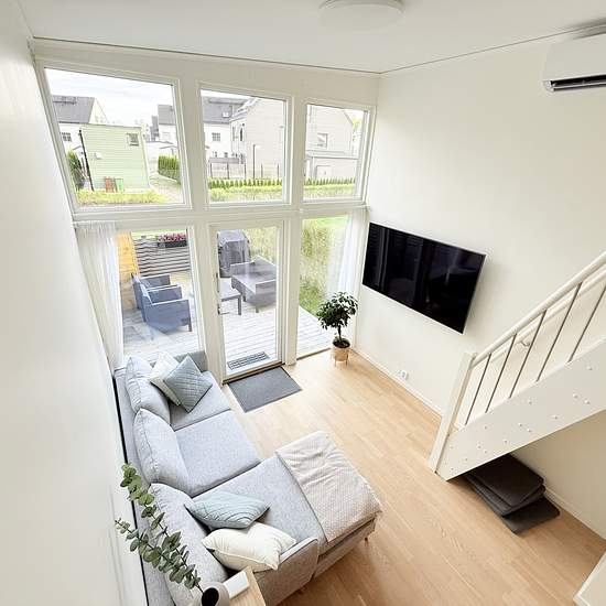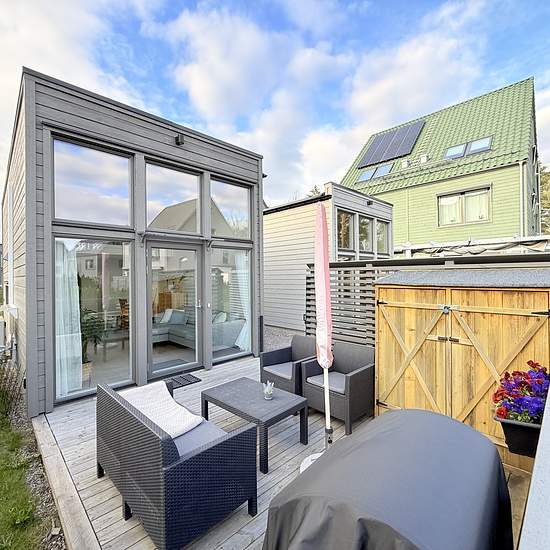 A cosy, private and small, furnished villa available for rent. Basic furnitures including bed, dining table, sofa, TV, wardrobe, coffee machines etc are included. Outdoor storage is included but NOT lounge furniture. The ground floor is 25 m², with a mezzanine sleeping area of 14 m². The property includes a pleasant outdoor deck and a manageable garden of approximately 70 m². Parking space for one car is included for free. Equipped with TV, dishwasher, washing machine with dryer, microwave, floor heating and air conditioning. I own the pro...