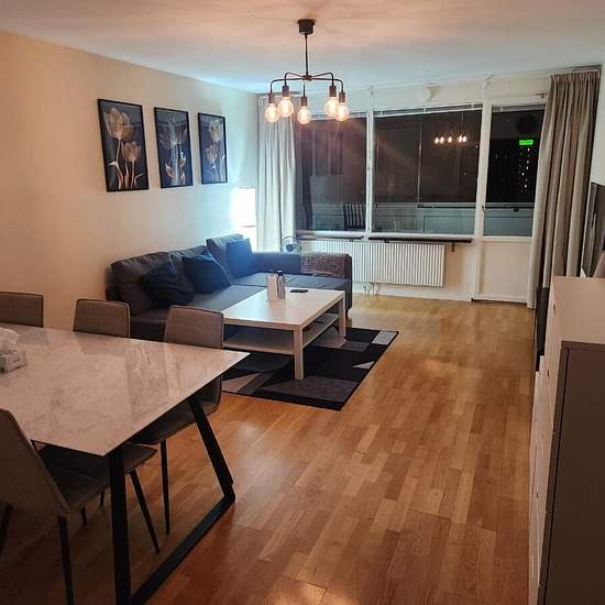 I’m renting out a room in my apartment in Huvudsta (Solna). The apartment is 82 sqm, located on the 8th floor with a really nice view and sunlight from both sides. Bedroom gets morning sun and the balcony gets the evening sun Location 3 min walk to Huvudsta metro and centrum 7 min walk to Västra Skogen 10 min bus to Solna Centrum Bus stop right next to the building About 10 min to T-Centralen by metro The room is furnished with a bed, side table, desk, chair and a wardrobe. I’m looking for someone clean and tidy. Deposit: one month (fu...