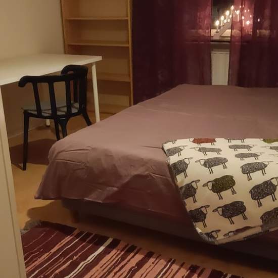 Cozy room in Huvudsta A nice, bright and furnished room of 13 sqm for rent. The accommodation is located in a 104 sqm apartment near the center of Huvudsta with, among other things, a grocery store, pharmacy, health center, dentist and gym. Only a 3-minute walk to the subway and about 10 minutes with the blue line to the T-centralen with subway. In addition, plenty of bike paths in the area. Perfect for those looking for accommodation in a quiet area. About the room and the apartment: * Access to kitchen, bathroom and an extra toilet (laun...