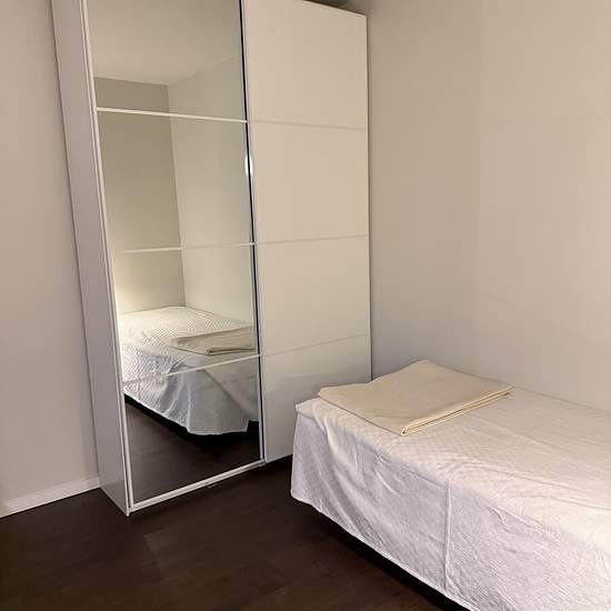 En hel renoverad lägenhet, hela lägenhetens inredning är nya . Lägenheten ligger högst upp i byggnaden. Det är en lugnt område. Det tar fem minuter till T- banan i Solna Centrum och tio minuter till Stan. Serviceavgift för hyresgäst: 803