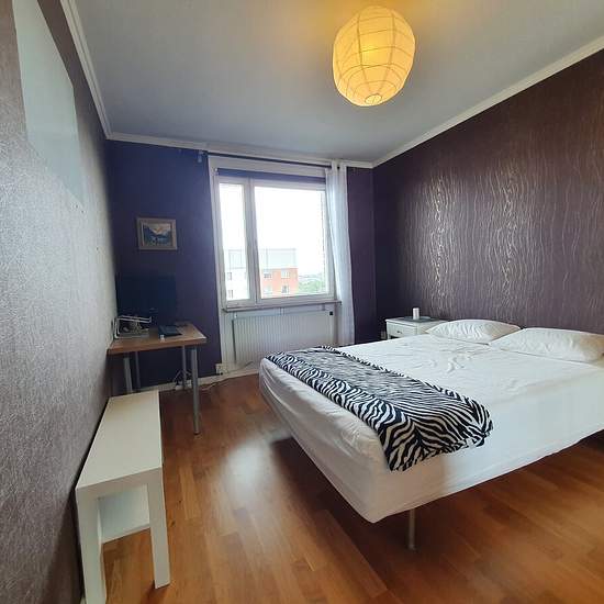 *****Room in Shared Apartment***** I am looking for a roomie to share an apartment with me. Everyone will have their own room around 12 square meter. Its a 3,5 rooms fully furnished apartment 5 mins walk to Metro (Blueline) that takes you to T-centralen in less than 10 mins. No kids or Pets allowed, perfect for students and if you are moving to stockholm for work. The apartment has: - 3 bed rooms (fully furnished), 2 bathroom, 1 store room, 1 kitchen (fully furnished) with dishwasher and washing machine (there's common laundry in the base...