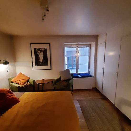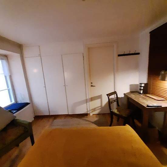 Möblerat rum uthyres i Gamla Stan parralellgata till kungliga slottet Stockholm. Hundra meter till busshållplats skeppsbrokajen. Rummet innehåller säng 140cm med lakan, 2 sängbord, litet skrivbord, 2 mindre fåtöljer, kaffebryggare, liten kyl, 40 tums tv samt 3 inbyggda garderober. Tillgång till delat kök och badrum. Lägenheten delas med 60+ par med vänlig hund (du måste alltså vara ok med hundar). Vi är vana vid inneboende då vi har haft det sedan 9 år då vår dotter flyttade hemifrån. Alla har varit glada och nöjda och stannat i snitt ca 3 å...