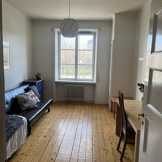 Möblerat rum med utsikt mot rålambshovsparken. Starka väggar med bra isolation så att man känner sig ifred. Rummet är i min mammas lägenhet som man delar med henne Serviceavgift för hyresgäst: 416