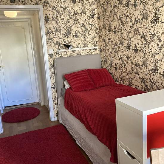Min inneboende flyttar nu ut efter sina studier och därför söker jag en ny hyresgäst. Jag hyr ut ett möblerat rum, säng,skrivbord,stol,bokylla, bra garderober, fönster ut mot återvändsgata. Bostaden har totalt 5 rum och du delar kök, badrum och dusch med 2 personer till. Jag har en liten hund, så ingen allergi mot pälsdjur. Bostaden ligger nära T-bana och bussar, nära universitet och högskola, samt gångavstånd till mataffärer och city. Hyr ut månadsvis med en månads uppsägning, rökfritt hem och endast kvinnlig hyresgäst med bra referenser, g...