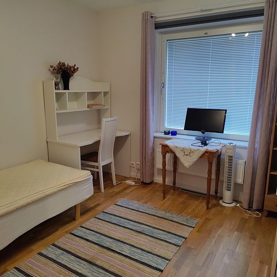 Möjligt att hyra depositionsfritt genom Samtrygg. Månadskostnad: 6900 kr. ________________________________________________________________ Snabbast bokar du visning genom att följa denna länk till Samtrygg: Här hittar du även fler bilder och mer info. ________________________________________________________________ Det är en femrumslägenhet i Norra Djurgårdsstaden där jag hyr ut ett rum. Buss 6, 57 och 75 finns i absoluta närheten och det är gångavstånd till Valhallavägen och Tunnelbana. Nära till restauranger, livsmedelsbutiker och g...