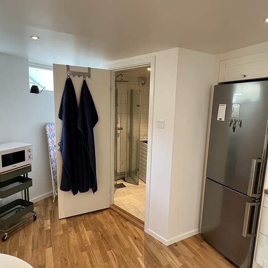 Ljus & nyrenoverad lägenhet på 39 kvm (1 rum och kök) med egen ingång och uteplats, i villa i natursköna Stocksund/Långängen. Lägenheten är fullt utrustad med de flesta bekvämligheter, el, vatten och Wi-Fi ingår. Nära bad & fina promenad/löparstråk. Det är ca 200 meter till vattnet och badstege. Väldigt bra kommunikation med buss ett par minuter bort. Du når Danderyds sjukhus & Tunnelbana samt Roslagsbanan på några minuter. Tunnelbanan in till centrala Stockholm tar ca 12 minuter. Cykelavstånd till universitet och KTH. Tillgång till p-p...