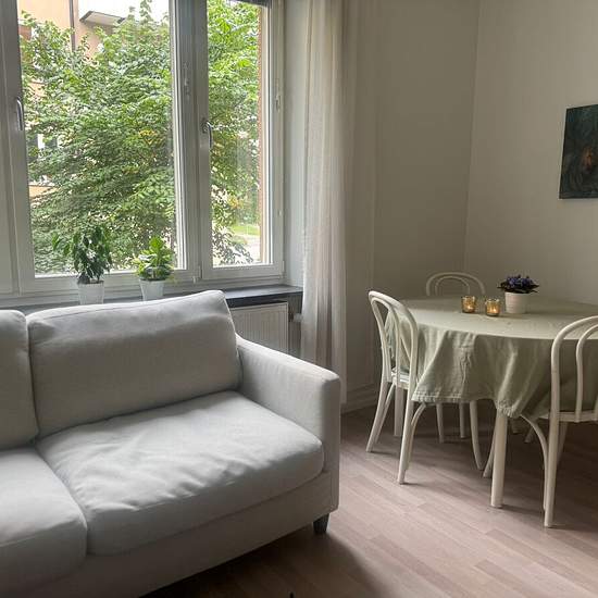 Möblerad 1:a – 25 m² på Tulegatan, Sundbyberg – nära T-bana Beskrivning Välplanerad och ljus 1:a på ca 25 m² uthyres på Tulegatan, centrala Sundbyberg. Lägenheten ligger på första våningen med egen entré och hyrs ut möblerad – perfekt för en person som vill bo centralt med nära till både service, kommunikationer och grönområden. Fakta • Hyra: 11 700 kr/mån • Ingår i hyran: värme och vatten • Tillträde: enligt överenskommelse • Yta: 25 m² • Våning: 1 • Hyresperiod: 1 år med möjlighet till förlängning ytterligare 1 år Interiör & utru...