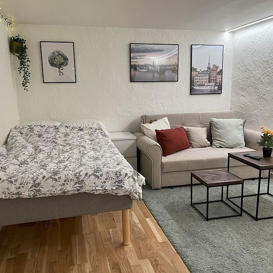 Uthyrningsdel i källarplan i vackra Duvbo! Smala fönster med ljusinsläpp, egen ingång ifrån vägen utanför och in till lägenheten. 55" TV och Soffbord Byrå och Garderob Tvättmaskin och Torktumlare Bord och stol intill trinettköket Badrum med Dusch God ventilation och värme i hela lägenheten. 2 min till buss och 10 min till t-bana Rissne och mataffär. 3 min till mini livs 10-15 min till Lötsjön och utegym Lekpark precis utanför huset Lugnt och trevlig område El, värme, vatten, bredband ingår i hyran. Serviceavgift för hyresgäst: 470