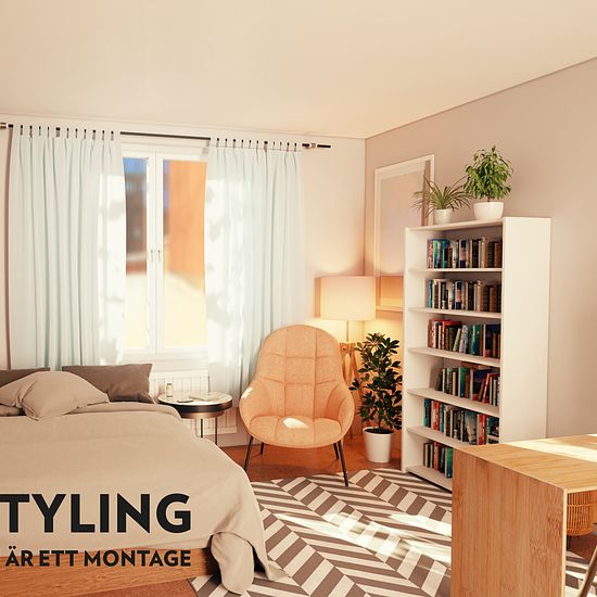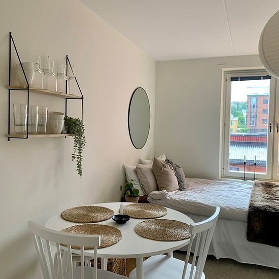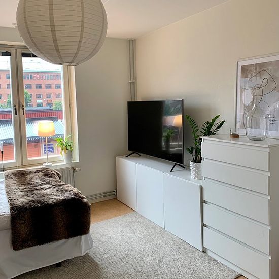 Lägenheten ligger högst upp i byggnaden och har snedtak. Bredband - 2 Mbit/s ingår via ServaNet Hiss Hushållsel - du betalar för det du använder (IMD) Hyran - juni och juli är betalningsfria månader TV - grundutbud från Tele2 ingår Vatten - ingår i hyran