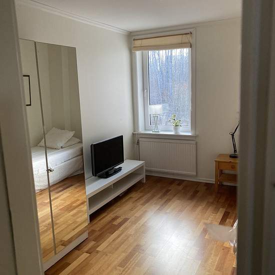 Ett rum på 11 m² uthyres i en kollektivlägenhet med totalt fem rum. Du delar gemensamma utrymmen på hela 114 m² – vardagsrum, kök, toalett, badrum och hall – med övriga boende. Lägenheten erbjuder en social och trivsam miljö med gott om plats för gemenskap. Boendet ligger i Taberg ca 1 mil från Jönköping . Bra kommunikation med buss. Badrummet är nyrenoverat (0-5 år) Serviceavgift för hyresgäst: 247