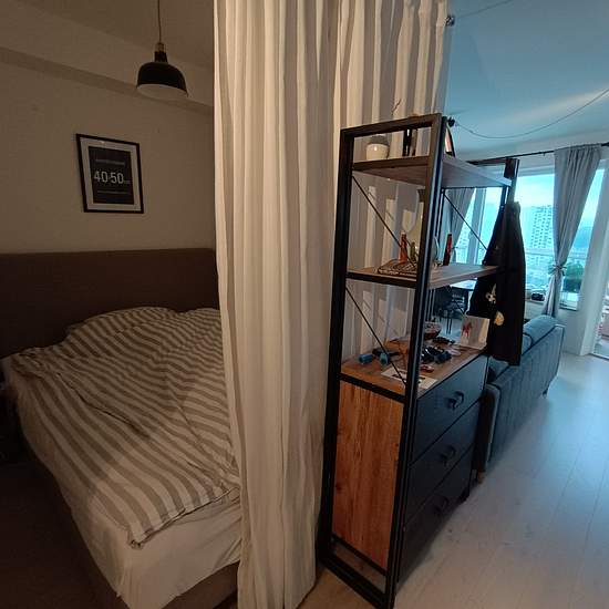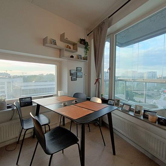 Svenska (English down below): Jag befinner mig utomlands i ett eller två år och därmed hyr jag ut min lägenhet från och med 1a februari. Lägenheten är en 1.5:a på 35 kvm med balkong på 7 kvm och ligger på våning 9 (utav 10). Planlösningen är satt bra så att det rymmer mycket. Lägenheten har balkongen mot norr och sidofönster mot väst som ger riktigt vacker solnedgång under vår till höst. Dessutom har byggnaden tillgång till gemensamhetsplats utrustad med grill och fysutrustning. dessutom är det cykelförvaring i källaren. I sovalkovet har ja...