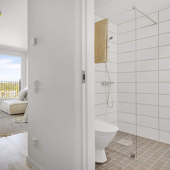 Täby Boulevard omsluter en grön innergård med planteringar och sittplatser , grillplats för de boende, en perfekt mötesplats att lära känna grannarna på. Fastigheten har även tre restauranger som ligger i botten våningen. HALL Entrédörr: Säkerhetsdörr RC3 av lackat stål med tittöga, Antracitgrå RAL7016 glans 30 Golv: Högtryckslaminat Berry Aloc original 200x400 klinkerimitation. Vägg: Målad gips NCS-S1002-Y Glans 5 Tak: Målad gips NCS-S1002-Y Glans 5 Klädhängare: Habo Svart Snickerier: Garderober med dörrar i lackad MDF, Hagaköket Ideal, Fä...
