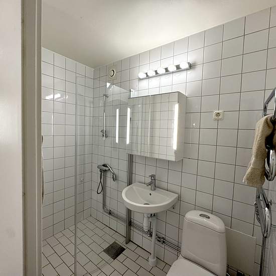 Fin och välplanerad studio/uthyrningsdel med egen ingång. Nyligen renoverad. Kokvrå med ugn, mikro, induktionshäll, fläkt. Badrum med dusch/wc, handduksvärmare och skåp med god belysning. Bredband via fiber 1000 Mbit, samt kabel-TV ingår, även el ingår vid normal förbrukning. Mycket centralt läge i Täby Centrum, nära Roslagsbanan - ca 15 minuter pendling till Tekniska Högskolan och T-banans röda linje / 11 min till Stockholms Universitet. Uthyres delvis möblerad med garderob och förvaring. Säng, stolar, mat-/skrivbord mm går att ordna vid ...