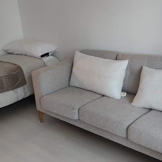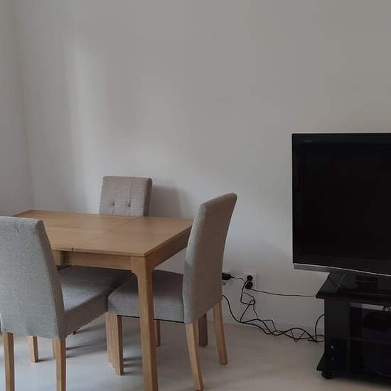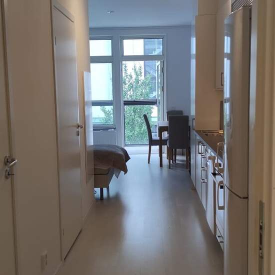 Helt ny lägenhet med högt tak på 2,70 cm belägen på våning 1 d.v.s (en trappa upp) Lägenheten är på c:a 30 kvm med kök + stort badrum/Tvättstuga + stort klädförråd i förhållande till total ytan) + stor balkong helt inglasad med öppenbar funktion med Aluminium golv som är rostfri, Alla vitvaror dvs Tvättmaskin/Torktumlare, Kyl / Frys, Spis /Ugn, Mikro samt Fläkt, OBS: Samtliga Vitvaror och maskiner är från Electrolux. Lägenheten hyrs ut som total möblerade där ingår Soffa från MIO, omställbar (El funktion med fjärrkontroll), Matbord med utd...