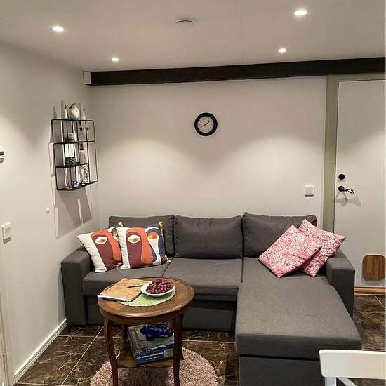Tänker hyra ut en möblerad lägenhet i mitt suterränghus i Lövhult utanför Tollered mellan Lerum och Alingsås. Sjötomt och en stilla plats. Bilderna visar själva lägenheten som är totalrenoverad 2023. Fullt utrustat kök och badrum/dusch. Bäddsoffa för ev. gäster. Strax utanför lägenheten finns en gäststuga med våningssäng som kan lånas vid behov. Även kanot och fiskeutrustning. Tv, bredband, el, vatten ingår. Tillkommer 50% av avloppstömning. Egen ingång. Yta: Cirka 30 m2 Pris: 8000kr/mån. Frågor och funderingar? Bara att höra av sig. //Lasse