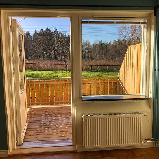 Hejsan! Pga jobb utomlands hyr vi nu ut vår fina 1:a omgående och tillsvidare. Vi börjar med att skriva kontrakt på 1 år. Det tar 1 min att gå till busshållplatsen och bussen tar dig till Trollhättan resecentrum på 16 min. Du tar dig från dør til dør på Högskolan på 16 min. I tillägg finns det fina cykelvägar som tar dig in till stan på runt 15 min. Det är en stor och ljus 1:a på bottenvåning med gott om förvaring. Både kök och bad är lite äldre men alt funkar fint. Den har en egen altan med sol hela dagen och utsikt över fina grönområden...