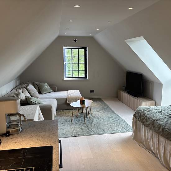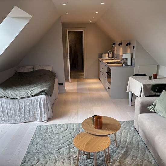 Hej. Nu är denna nybyggda 1a klar för uthyrning som ligger i ett lugnt trevligt villaområde. OBS! Lägenheten är mycket luftigare och större än vad bilderna visar kom och se själva på en visning om ni är intresserade. Dom som har varit i lägenheten blir ofta överraskad e hur mycket större den är än på bilderna. Uthyres fullt möblerad samt med dom vanligaste köksartiklar som behövs. (Allt är nyköpt) 120cm säng 55” Samsung smart tv och Sonosljud Stor bäddsoffa från Sweef modell Björnen Golvvärme på hela golvytan. Takfönstret har en ba...