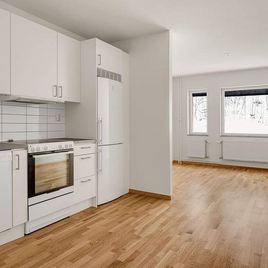 Välkommen till Bergfotsvägen i Tumba! Här bor du med gångavstånd till pendeltåget, Tumba Centrum och flera vackra sjöar. På Bergfotsvägen 16 M kommer du att bo i ett hus som är byggt 2018. Lägenheten på 1 rum och kök har 35 välplanerade kvadratmeter. När du kliver in i hallen möts du av en ljus och fräsch lägenhet med vita väggar och parkettgolv. Direkt in till hallen hittar du det helkaklade badrummet som går i vitt och grått. Här finns plats för tvättmaskin. Resterande av lägenheten har öppen planlösning vilket gör att du får ett fullsto...